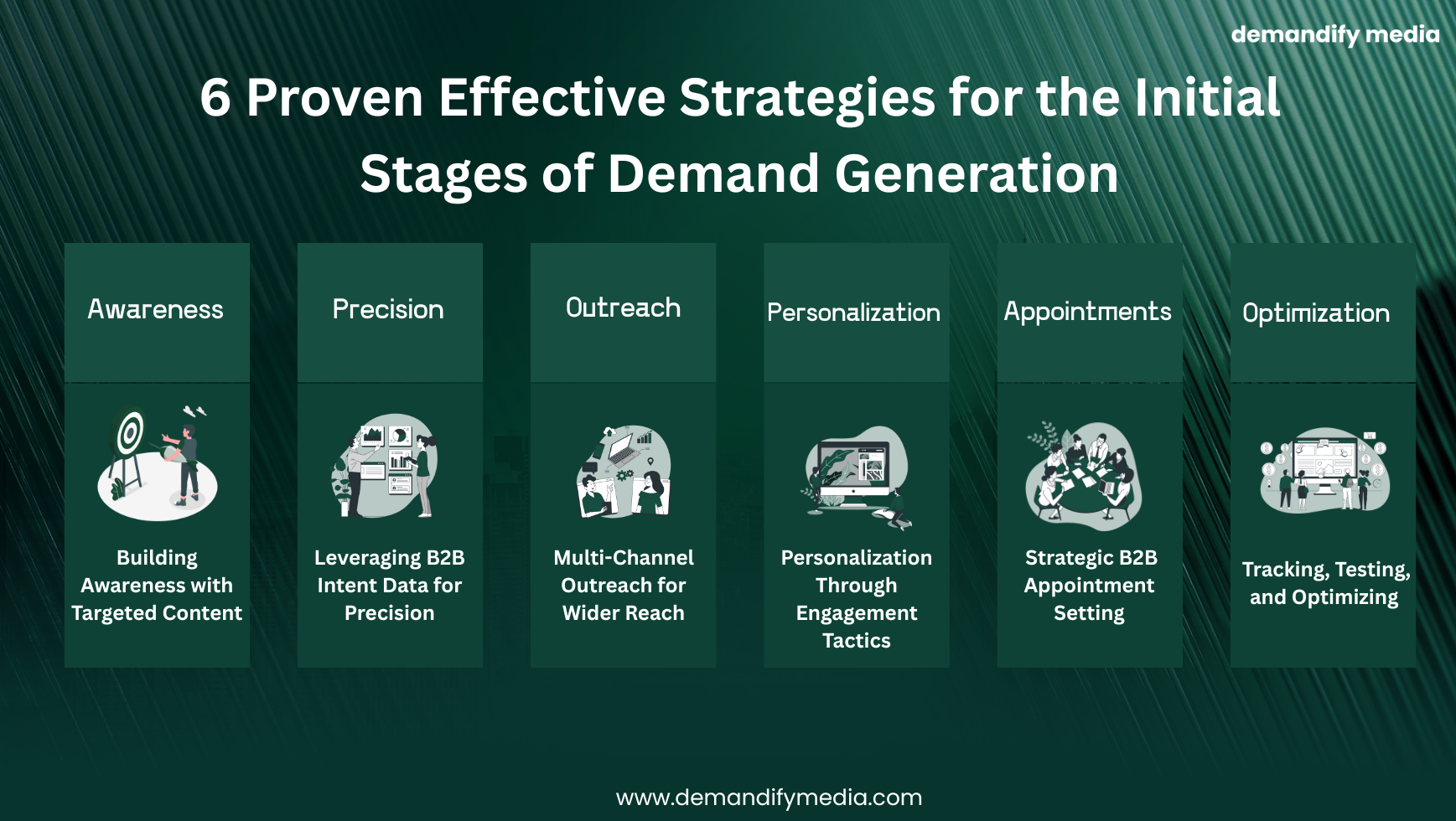 Raising awareness and interest and addressing awareness at the top of the demand gen funnel require laser focus and sophistication. There's a solid start towards pipeline development when there’s a mix of educational intent-targeted content, multi-channel personal outreach, and precise appointment-setting outreach. In a competitive market, sustained strategy refinement allows businesses to take the B2B prospects beyond curiosity to genuine consideration.