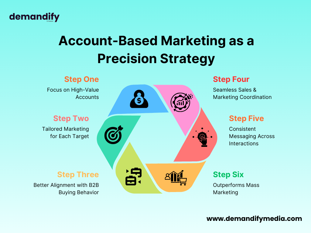 Account-Based Marketing, which focuses on individual high-value accounts, is almost the best strategy for precision marketing. Unlike demographic targeting, ABM dives deep into specific businesses and develops tailored marketing for every target business. It works much better than mass and blends more with how people buy in B2B.